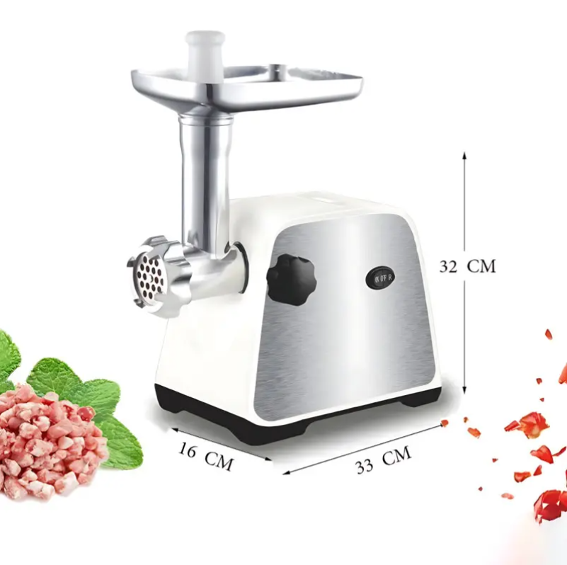 Електрична м’ясорубка — це потужний та багатофункціональний кухонний прилад, який стане незамінним помічником у приготуванні домашніх страв. Вона легко справляється з м’ясом, рибою, овочами та іншими продуктами, дозволяючи швидко приготувати фарш або сік із томатів.