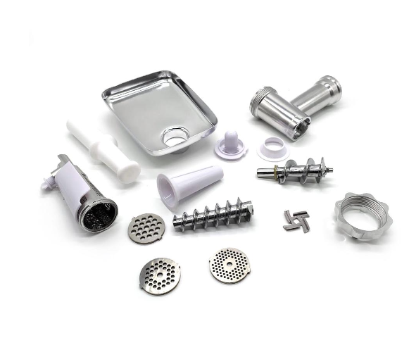 У комплекті передбачені насадки для ковбас і кебе, а також соковижималка для томатів — усе для створення домашніх кулінарних шедеврів.